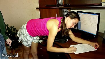 The IT guy resolves the problem with a hung computer but first of all with a cock-thirsty girl