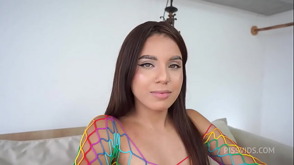 Petite Purple Hair Nypho wants the creampie from a football player and then his friend next