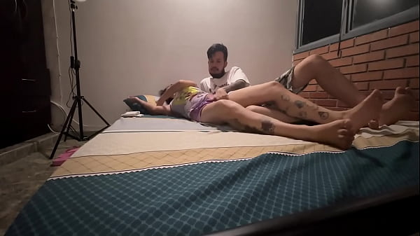 Quando eu deito assim de pijama ele fica maluco com vontade de comer minha buceta gostoso na cama.