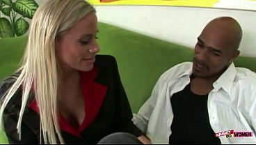After ferociously fucking this young blonde sex doll, he spurts hot semen all over her giant rack.